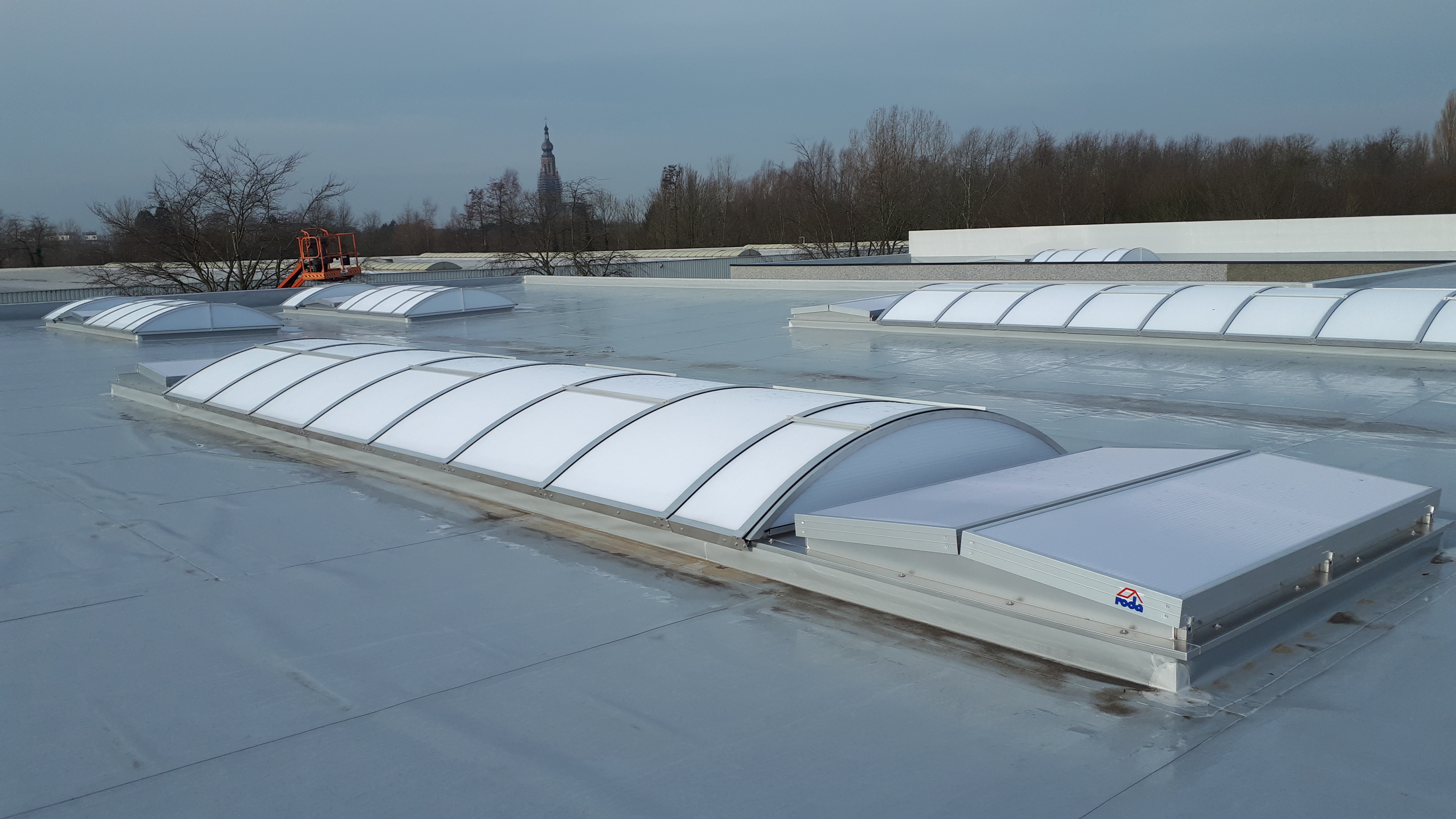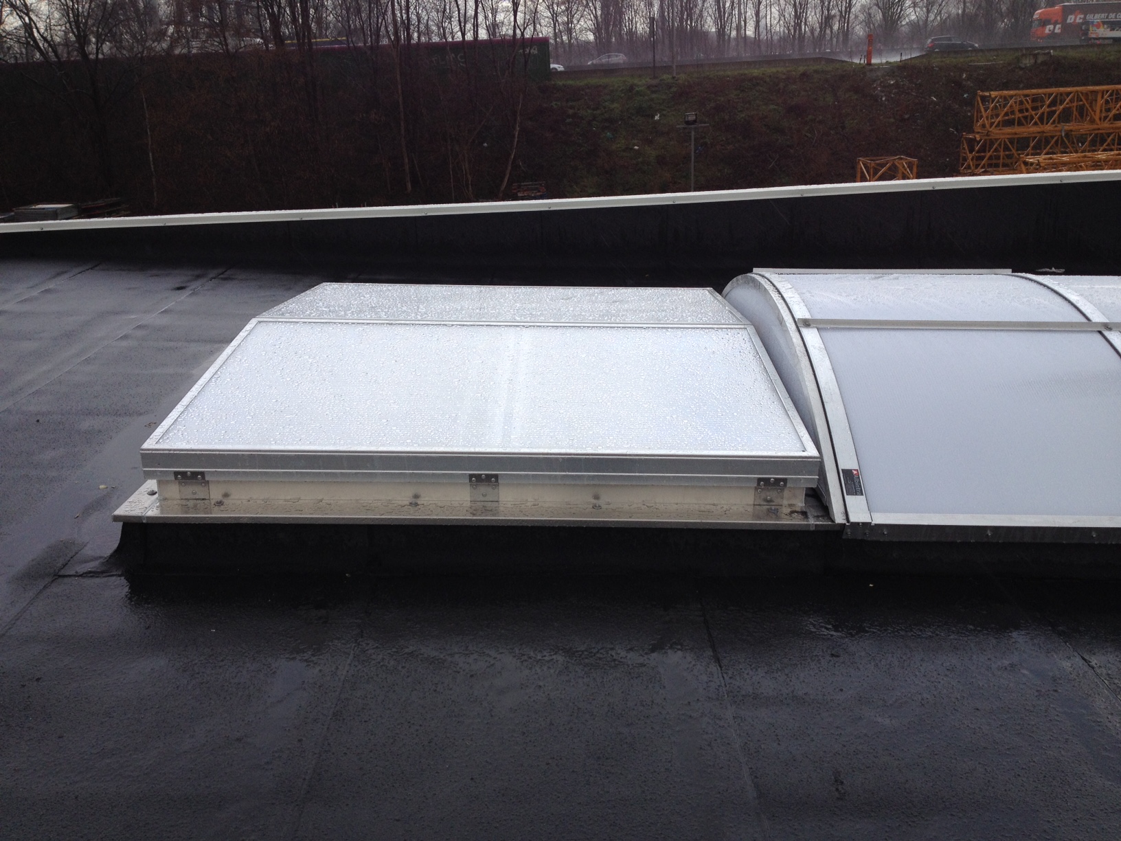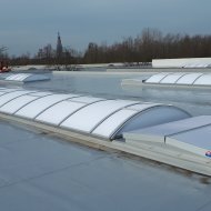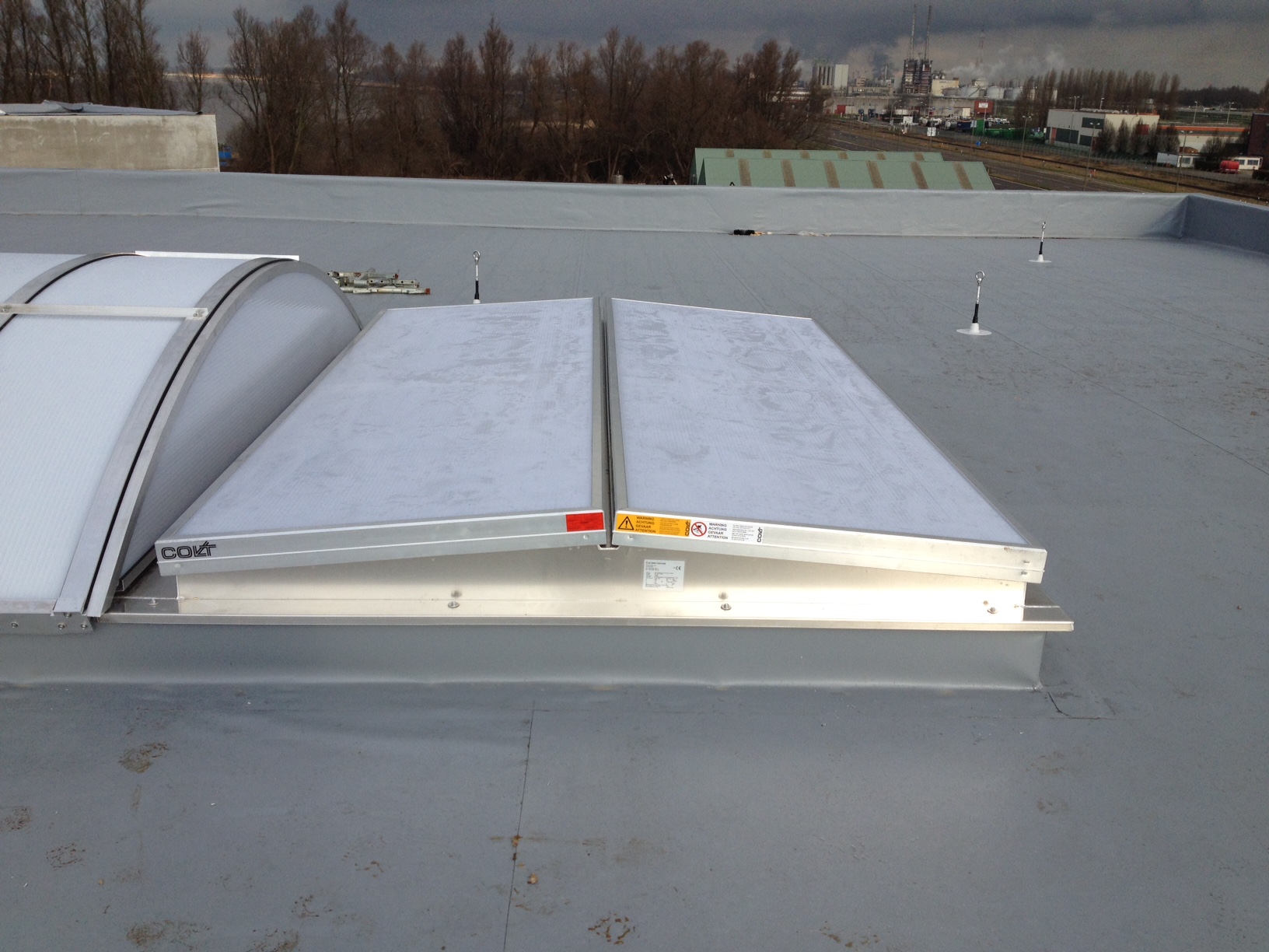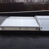 Een andere mogelijkheid als natuurlijk ventilatiesysteem is om te werken met een dubbelflap-ventilator. Deze volstaat aan de EN 12101-2 norm. Dit dubbelflapsysteem is zowel in elektrische als pneumatische versie verkrijgbaar. Het afdichtingsvlak is voorzien van EPDM-profielen om de luchtlekkage tot een minimum te beperken.